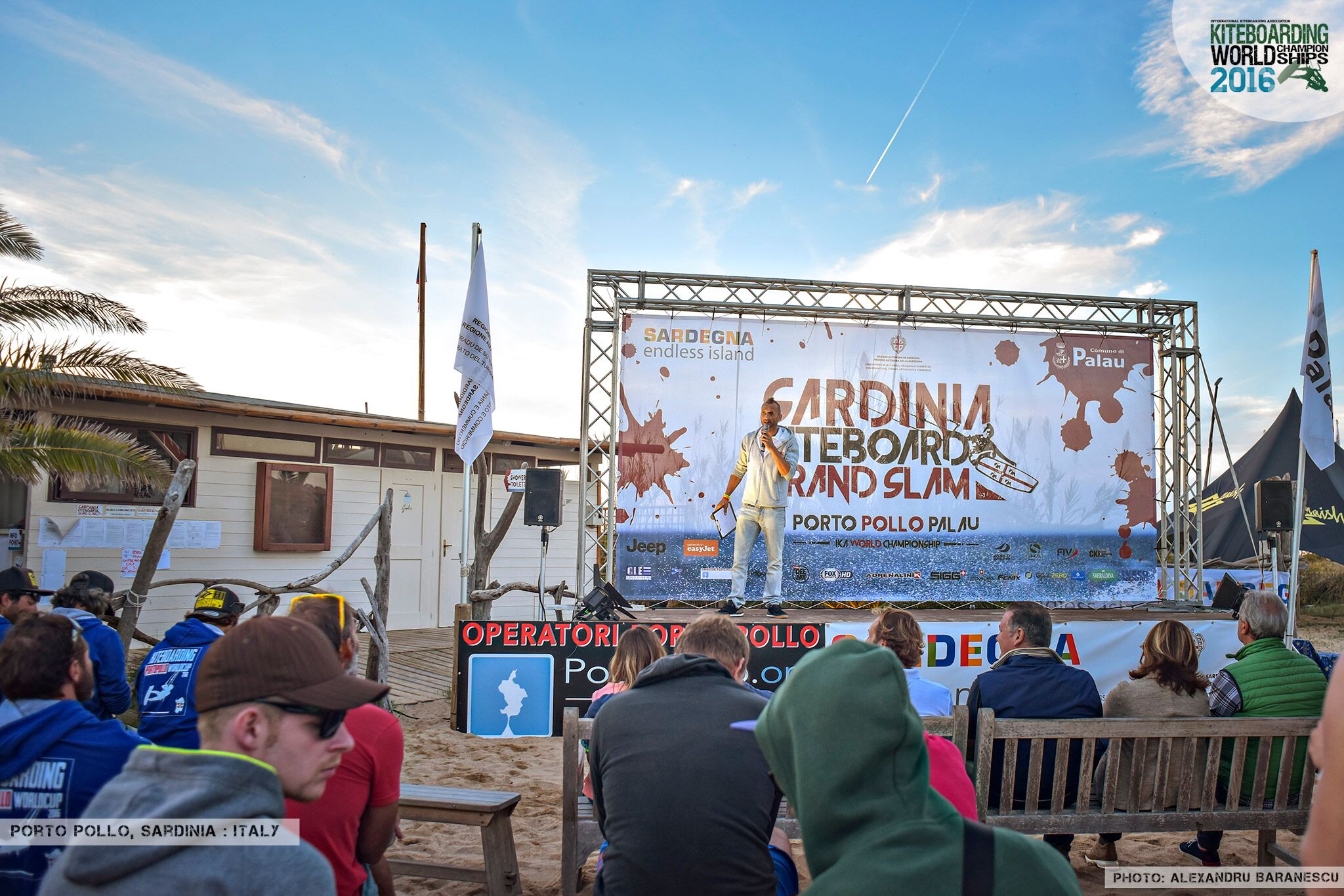 The location Porto Pollo has been popular under water sports enthusiasts ever since the seventies. The road from Bonifacio between Corsica and Sardinia is a perfect nozzle which provides very good wind statistics. The spot itself consists of two shallow water bays which are separated by a small headland, the wind can be very strong and gusty because of the mountains surrounding the bay. Nonetheless the weather forecast promised good winds for all competitions.