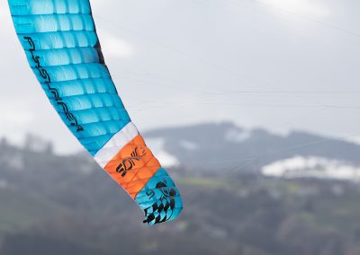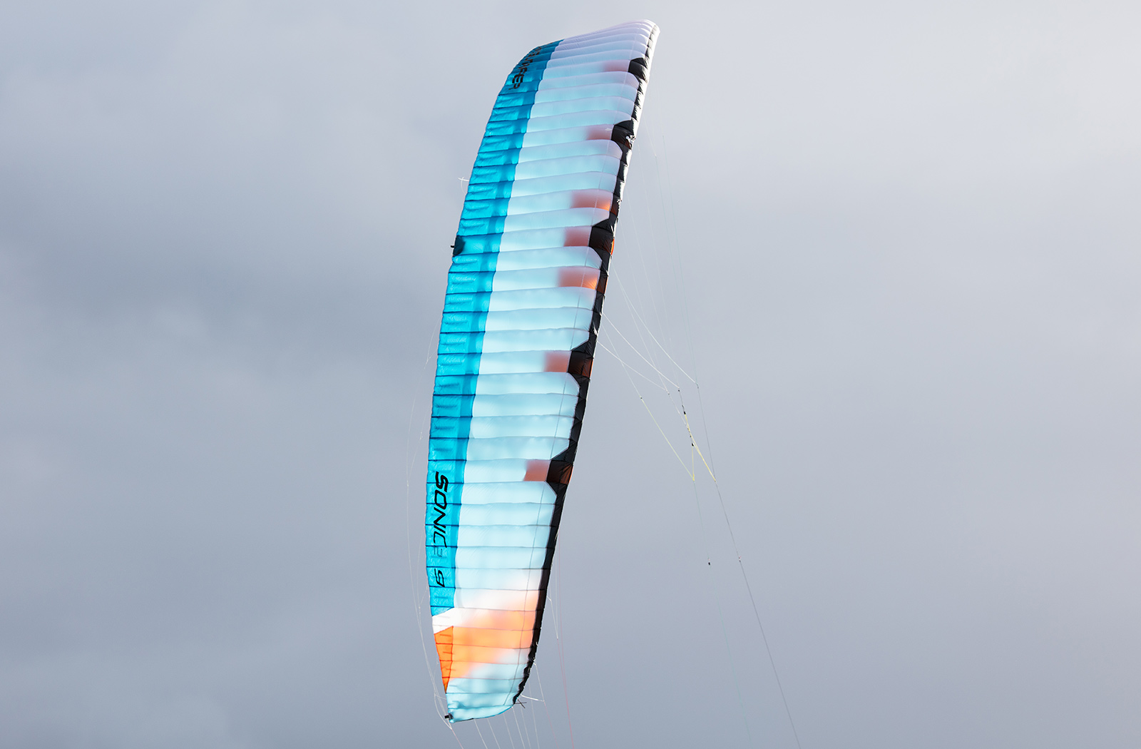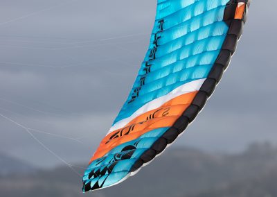 Our exclusive Lotus kite cloth, well known for its air tightness, extremely light weight and its water/stain repellent characteristics is used for the topsail and leading edge of these kites. Since we received some customer request for a “lighter” SONIC2 graphic design, we have decided to bring you this super exclusive Limited Edition SONIC2 in white/blue/orange and black. The white Lotus topsail on these limited edition kites let the light shine through the canopy creating an amazing “see-through” inside the skeleton of the kite itself.
