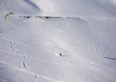 The first harbingers of winter have already arrived in the northern hemisphere. Short days and inclement weather. The fair weather kitesurfer does not connect much with the dark and cold seasons. The adventurous snowkiter, on the other hand, is preparing himself for his next outdoor adventure. The fascination of climbing steep slopes even in the lowest wind speeds shifts the boundaries of possibilities and lets him dream of days filled with endless deep snow descents. Nothing inspires him more, like exploring untouched terrain.