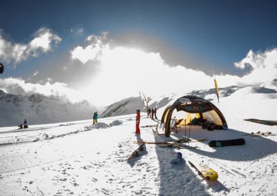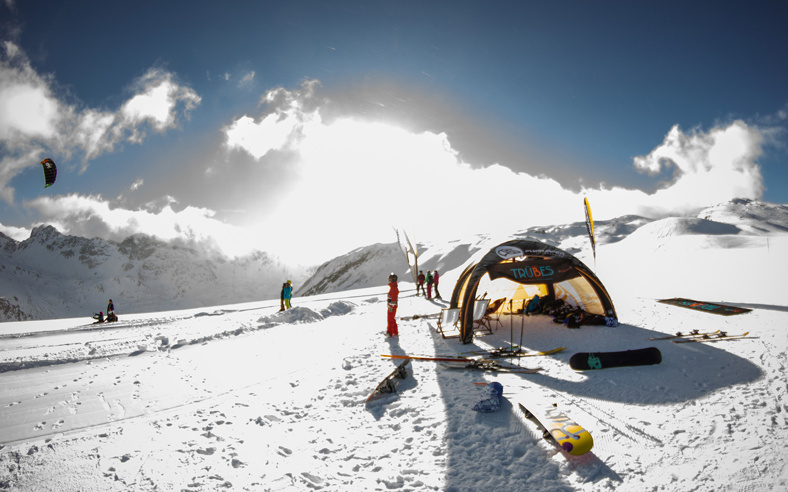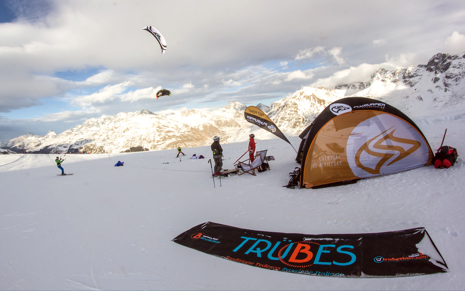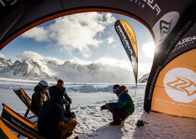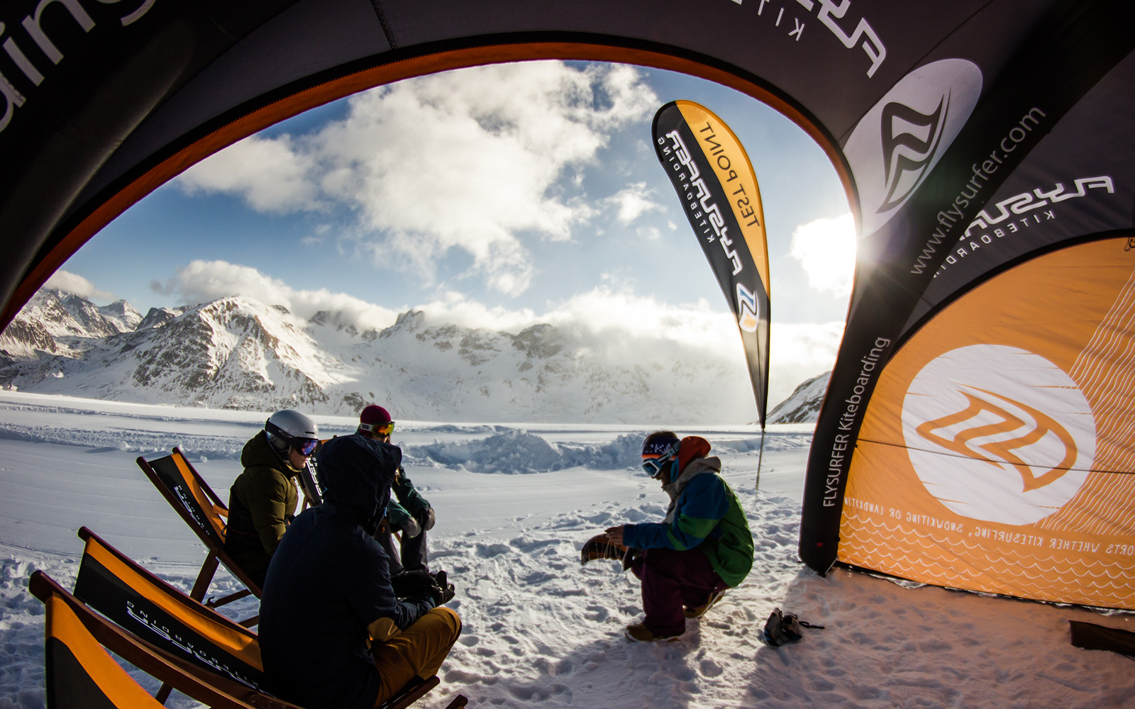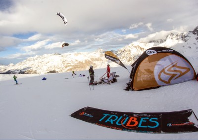 Flysurfer hat hierzu einen Tespoint errichtet, wobei Tobi und Maxi Snowkitekurse angeboten haben. Die Freerider, aber auch zahlreiche Einheimische und Touristen konnten mit dem Viron2 schnell lernen und auch gleich ihre ersten Meter fahren. Bei den ambitionierten Teilnehmern gab es auch große Begeisterung für den SPEED5, der ununterbrochen getestet werden wollte.