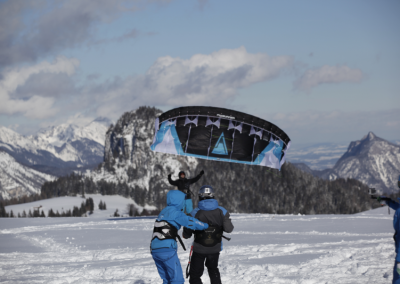 „Wir haben 10 Jahre Erfahrung im Snowkiten und Kitesurfen, wir haben ein super Team und Spots, gut geschulte Lehrer, einen Shop, das Wissen und eine große Auswahl an Kites für alle Bedingungen.”