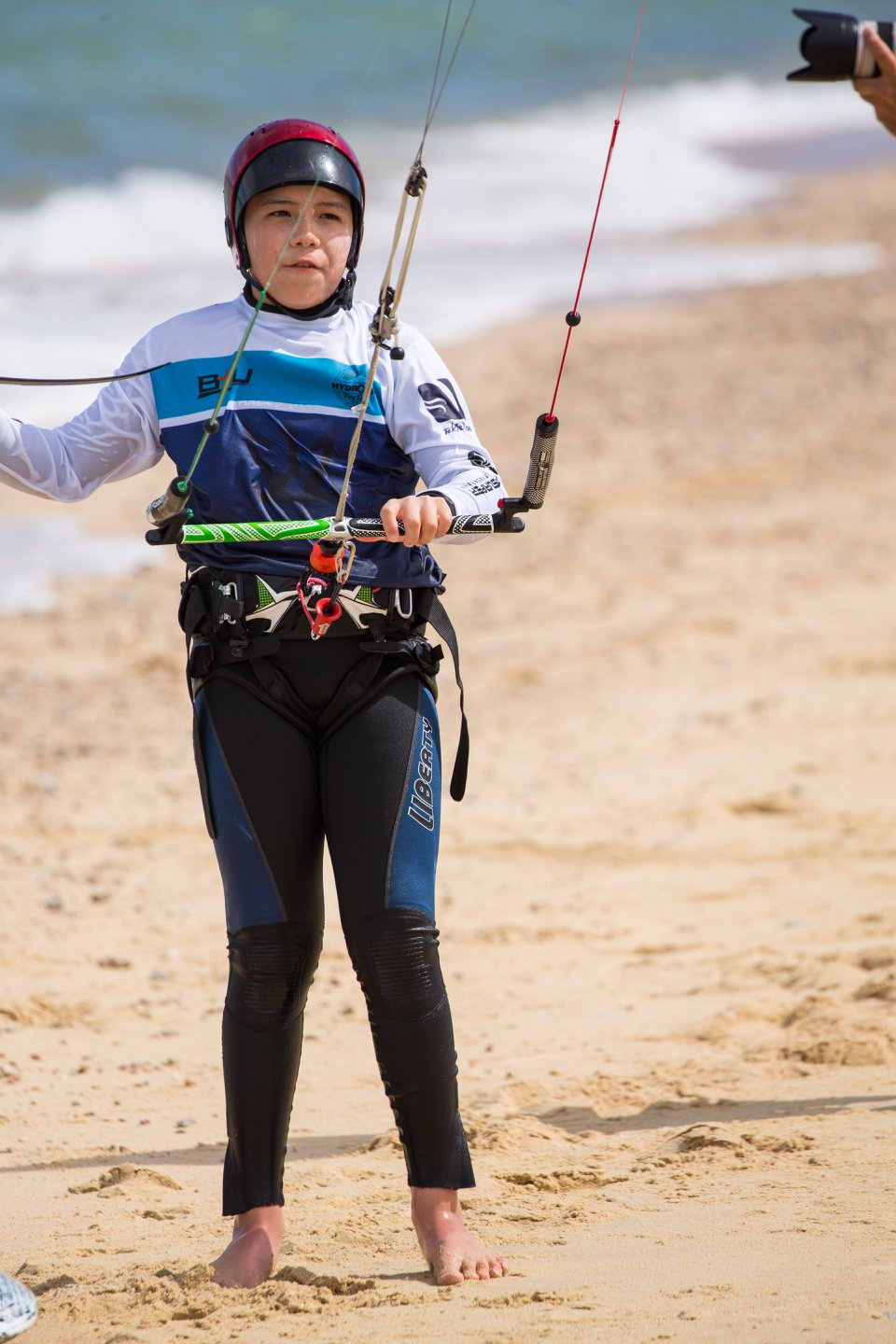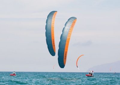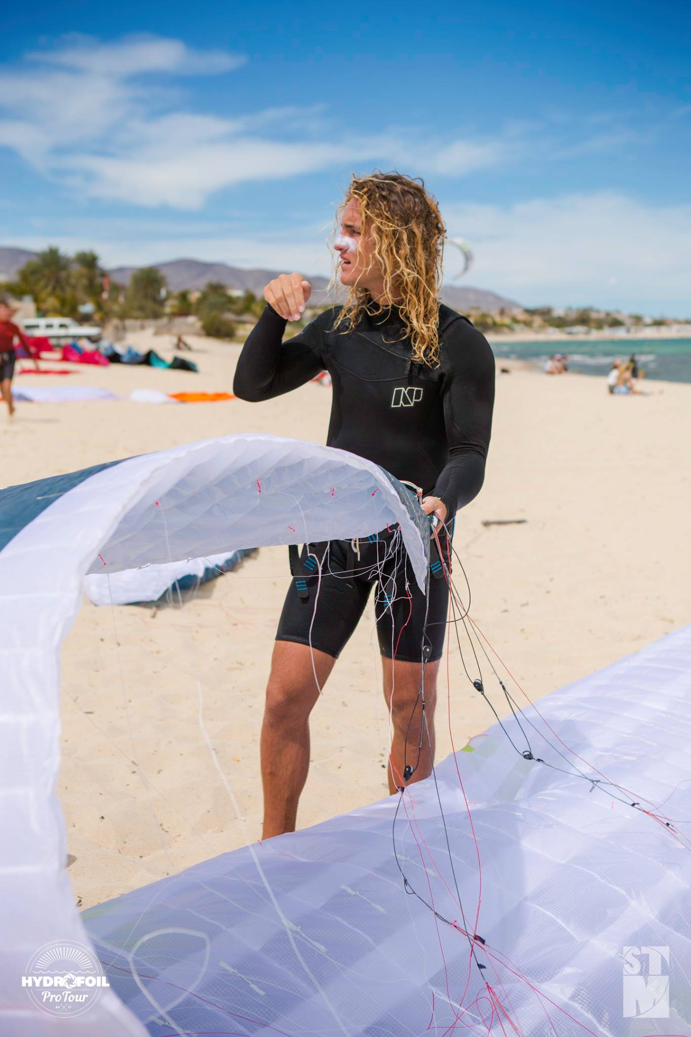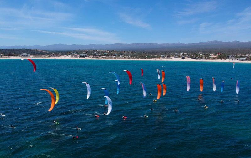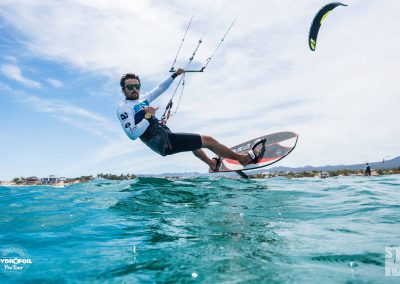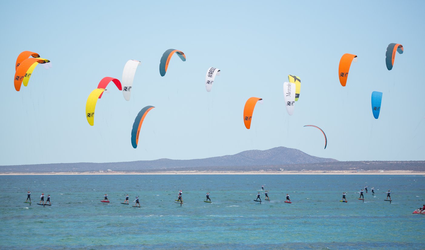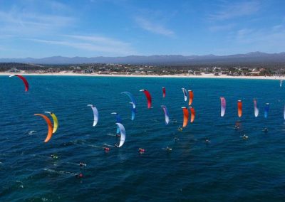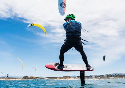 Der erste Tag der HydroFoil Pro Tour begann um 9.00 Uhr mit einem Skippersmeeting im La Ventana Beach Resort, dem diesjährigen Gastgeber. Der Wind wehte gegen 13 Uhr, mit einer leichten Brise von 7-11 Knoten, nur 1 Knoten über der Mindestwindgeschwindigkeit. Während der Kurssetzung hat Team FLYSURFER ihre Materialwahl getroffen, die zwischen 15 und 21 Meter SONIC RACE Kites liegt.