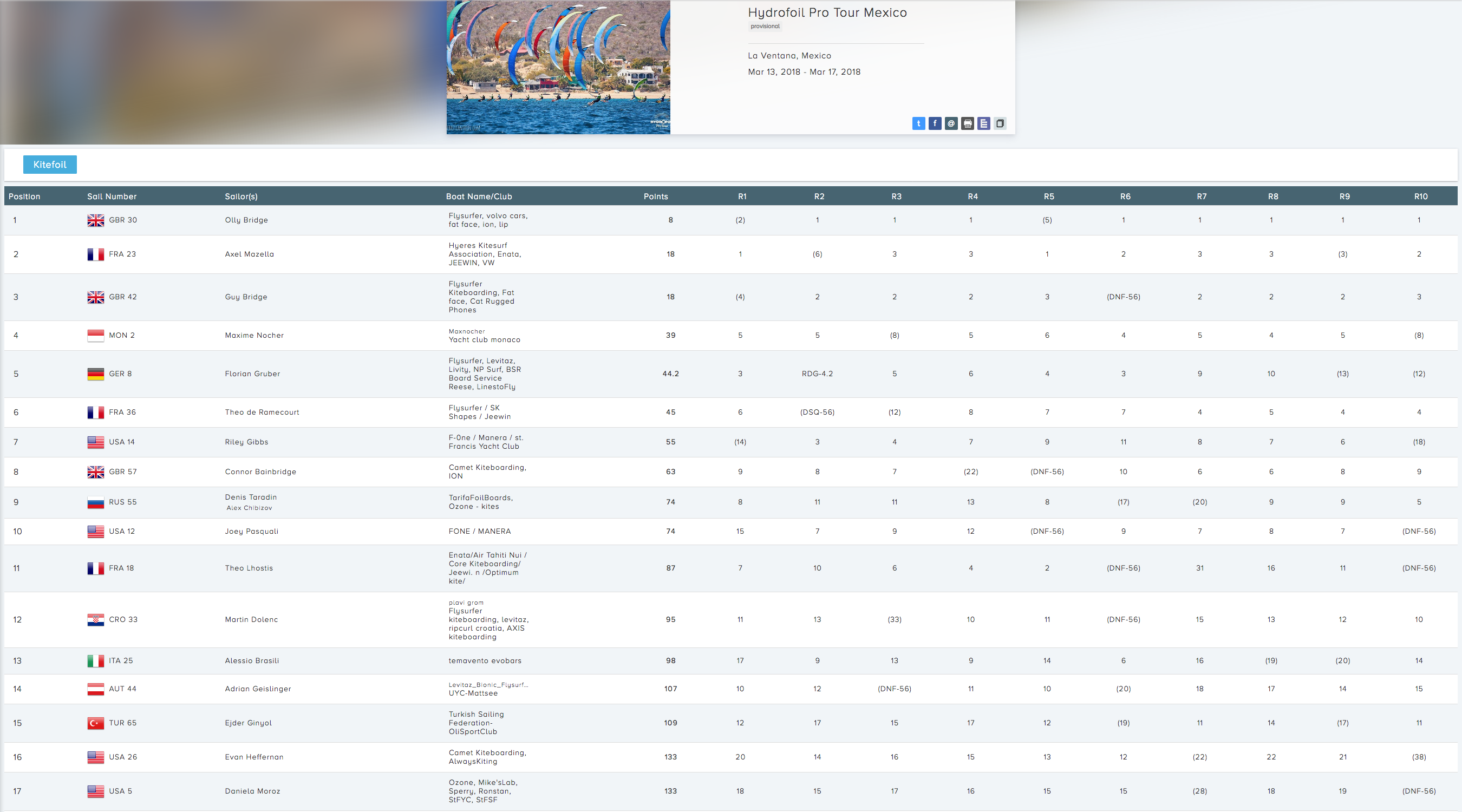 HydroFoil Pro Tour 2018 Mexico Results: