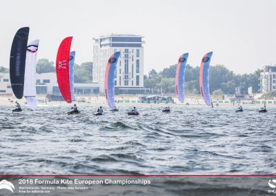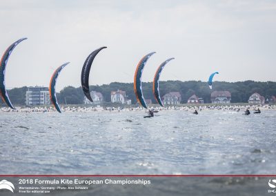 Warnemünde, ein beliebter Badeort in der Nähe von Rostock, ist bekannt für seine feinen Sandstrände und zuverlässigen Winde. Doch an den ersten Wettbewerbstagen, wurde das Rennkomitee entweder mit keinem Wind oder zu viel herausgefordert – am Ende konnten 8 Rennen in der Qualifikationsserie und 8 Rennen in der Finalserie für die 45 Männer und 14 Frauen aus 18 Ländern von 4 Kontinenten bei dieser Europameisterschaft 2018 durchgeführt werden.