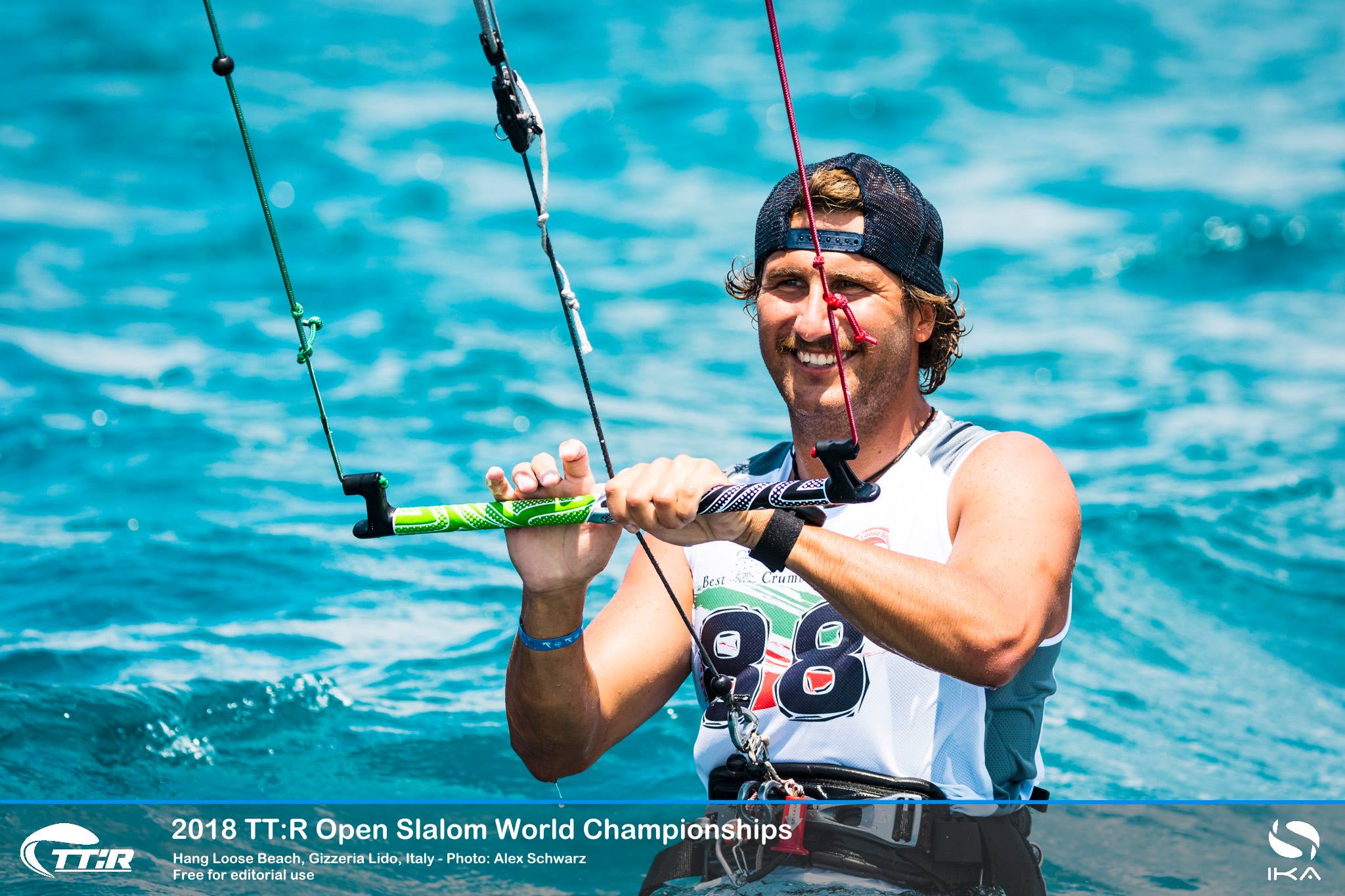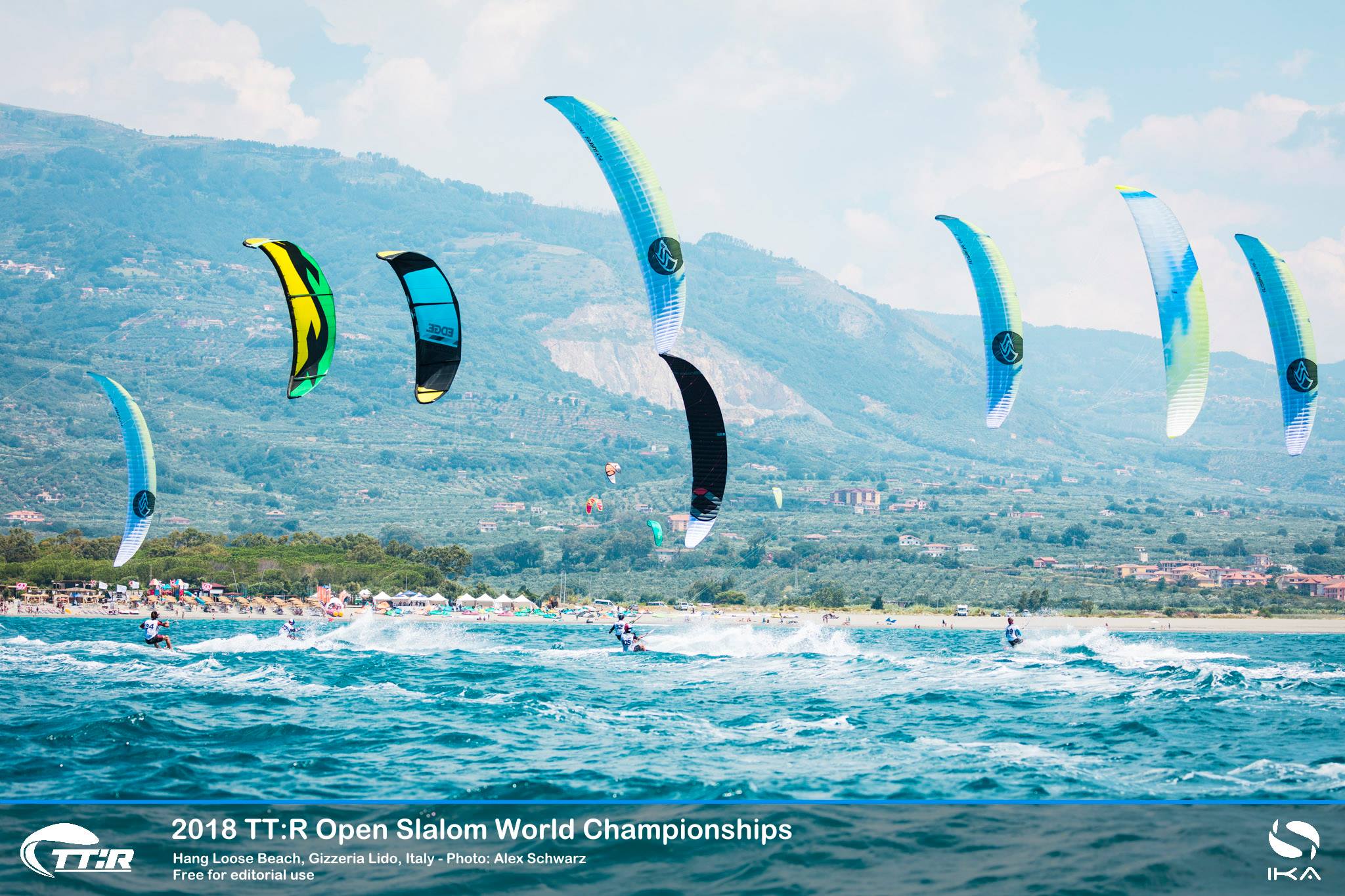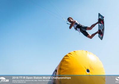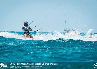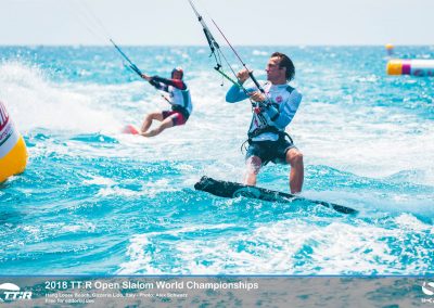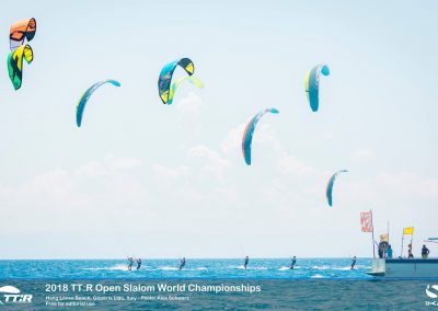 Eine Flotte mit den schnellsten Race-Talenten der Welt hatte sich für den TwinTip: Racing World-Titel 2018 im warmen, türkisfarbenen Wasser vor dem süditalienischen Hang Loose Beach versammelt. Das starke Feld von 59 Fahrern aus 19 Ländern, darunter auch der zweimalige WM-Titelverteidiger Florian Gruber, kämpften in der spektakulären TT:R-Slalom-Boardercross-Disziplin um den prestigeträchtigen mit 10.000 Euro Gesamtpreisgeld dotierten Weltmeistertitel, in Gizzeria, Kalabrien.