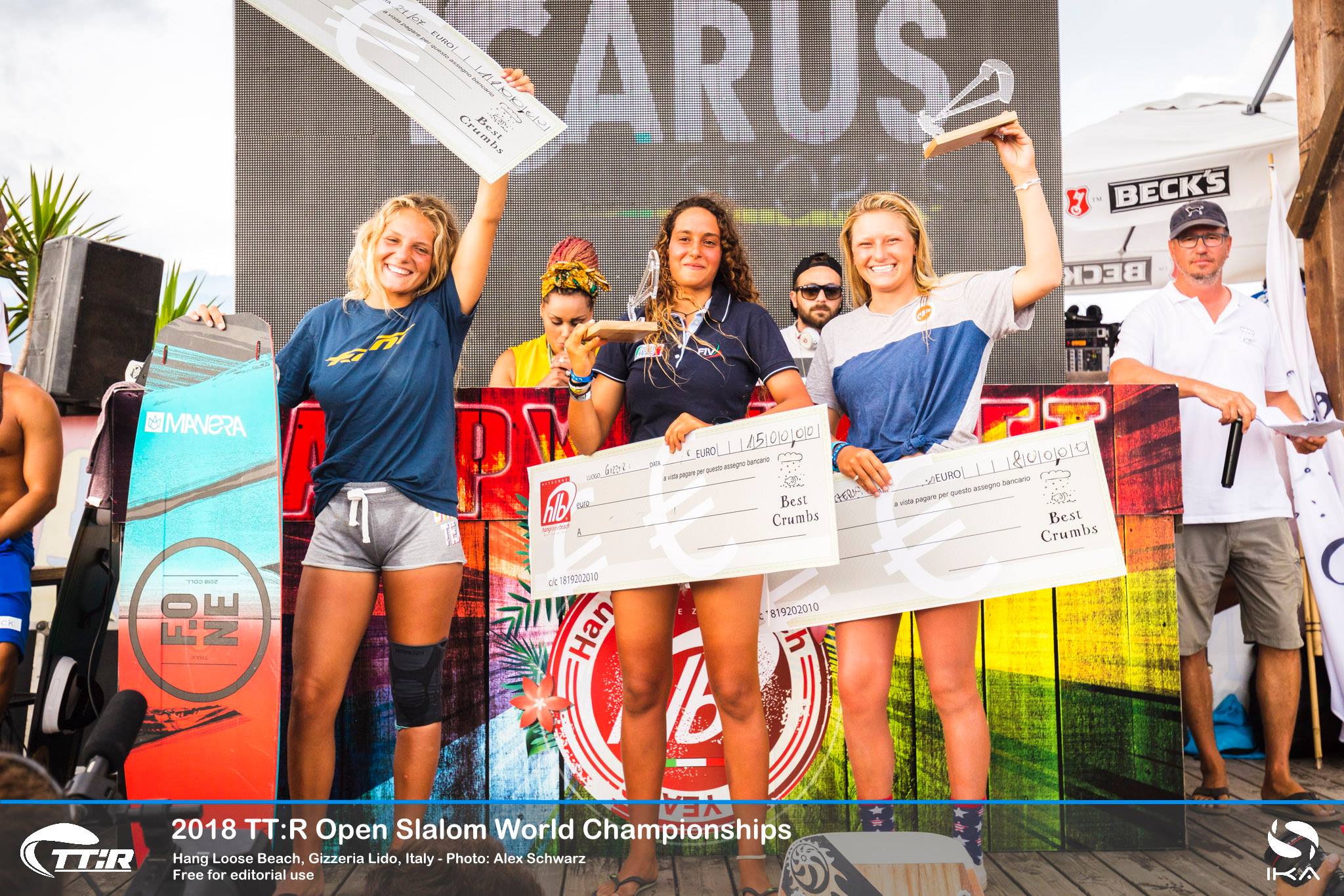 In der Frauenflotte gewinnt die Lokalmatadorin, die Italienerin Sofia Tomasoni den TT:R World Titel! „Ich bin wirklich begeistert, weil ich diesen zweiten Titel so sehr wollte“, sagte ein sichtlich erleichterter und begeisterter Tomasoni. „Hier habe ich Kiten gelernt. Hier ist meine Familie. Es ist fantastisch, es hier zu schaffen. Ich hatte an den ersten beiden Tagen Probleme. Das war schwer für mich.“